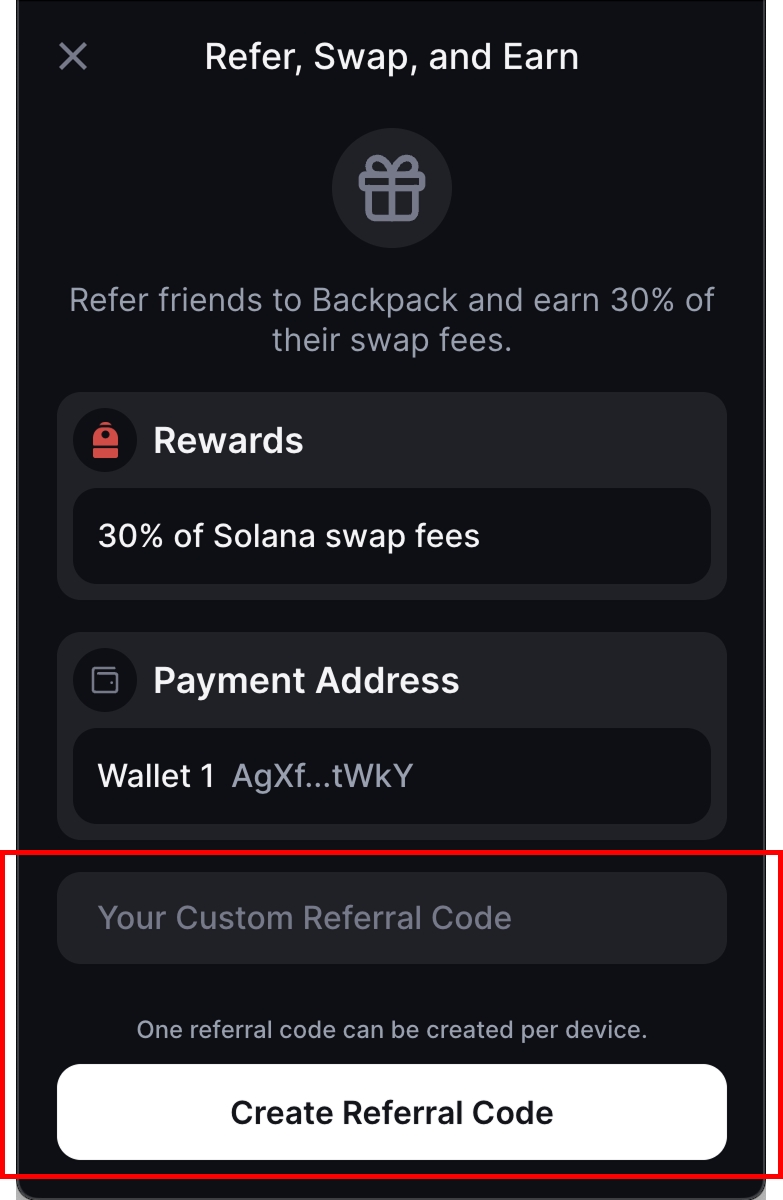 Реферальная система кошелька Backpack позволяет вам зарабатывать каждый раз, когда ваши рефералы обменивают криптовалюту в сети Solana (с использованием нашего встроенного обменника).