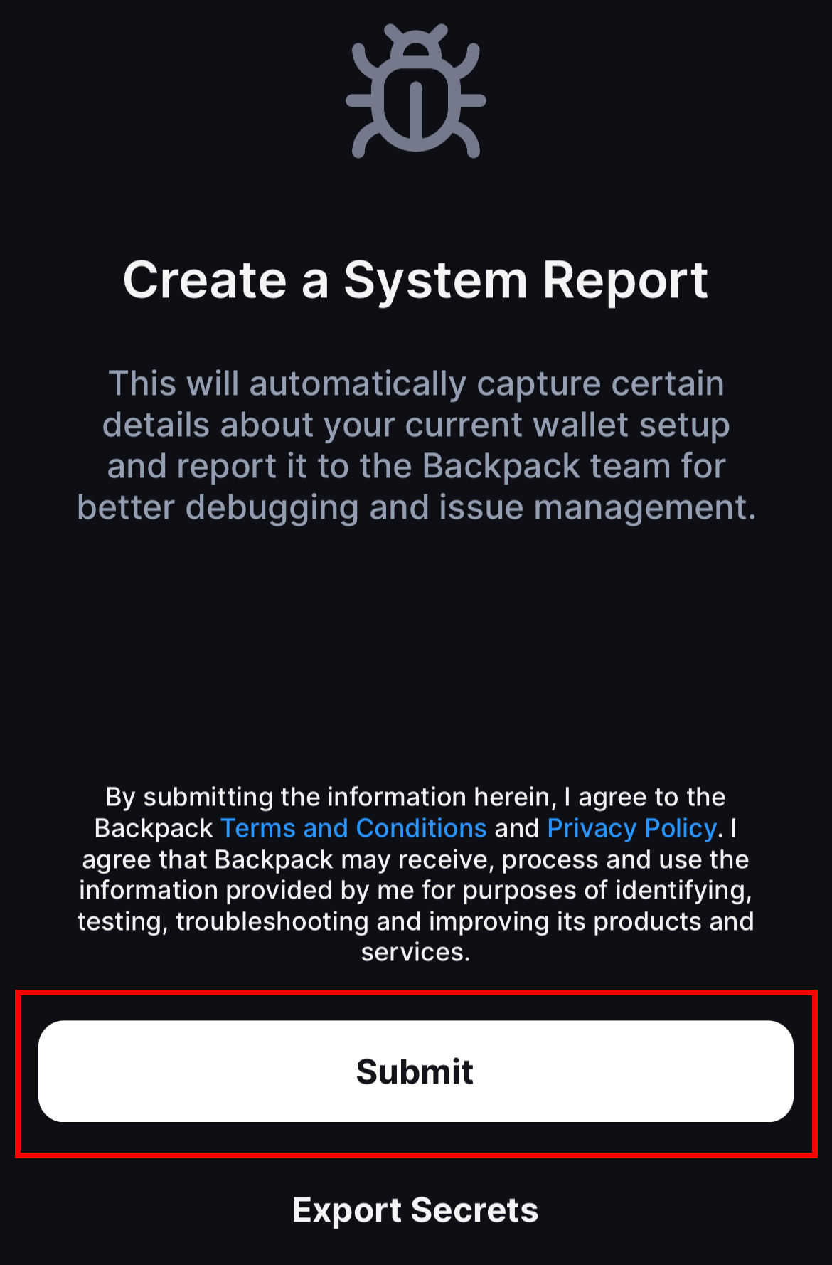 2) Chọn 'Bug Report'