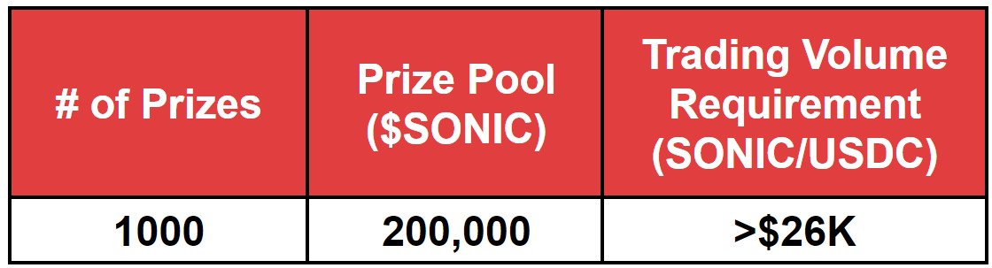 Bắt đầu vào ngày 27/1, 2AM UTC. Trade $SONIC trong thời gian diễn ra sự kiện để có cơ hội giành phần thưởng từ 200,000 $SONIC. Người sở hữu Mad Lads sẽ được tăng 5%